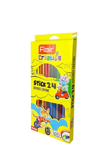Flair Creative Smooth and Bright Erasable Crayons, Non-Toxic and Safe for Children, Set of 24 Shades with 1 Eraser and 1 Sharpner