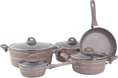 Why Royalford 9Pcs NON-STICK cookware's is necessary in today's kitchen?With a continued focus on healthy diet, people are reducing the amount of fat they cook with. However, it's not all types of cookware's that would perform well with little oil. Any solution? The answer is non-stick cookware's. As Royalford 9Pcs granite non-stick coating mate real keeps updating, today's non-stick pans and pots can offer the benefits of traditional ones, moreover extra bonus of easy clean-up, and fine cooking performance with limited grease. To stay healthy, we have to have a set of good non-stick cookware. Royalford Cookware Granite Coating cookware set features 5 layer of non-stick coating for good performance with little oil, with additional benefit of easy clean-up and seamless food release. This set of pans and pots of works safe with gas, electric, ceramic, induction and all other types of stovetops.This cookware set performs in the kitchen, standing up to large family meals, gourmet cooking and big breakfasts with ease. Designed for extreme durability, fast and even heating and the ultimate food easy-release. This 9Pcs cookware set is made with a water-based coating that is made without PFOA for a healthy cooking experience.This non-stick Cookware set is delicately made, taking both beauty and practise into consideration. Easy to clean, good for everyday cooking and fit for kitchen of every size.