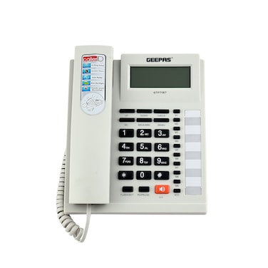 Geepas Gtp7187 16 Digits LCD Display Caller Id Telephone - Recording 15 Out & 50 Incoming Calls With Auto Redial, Hands-Free Calling, 16 Ringtone & Local Area Code Setting
