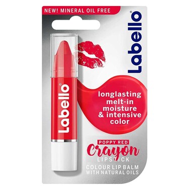 Labello Lipstick, Crayon Colour Lip Balm, Poppy Red, 3g