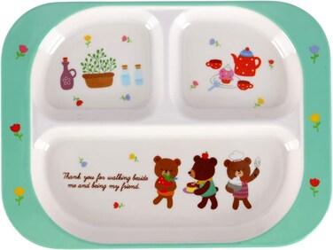 Transform mealtimes into fun times for your little one with this adorable Royalford RF7247 Melamine 3-section Rectangular Baby Plate. Featuring endearing motifs in colourful hues, such as three bears, a kettle, cupcake, plant, and pretty flowers, this plate is sure to grab your child's attention.It is divided into three sections so that you can neatly serve different types of food at the same time. You don't have to worry about your little one dropping this Royalford baby plate, as it is made from robust melamine material. With dimensions of 25.6 x 18.8 x 2cm, this rectangular plate serves just the right amount of food for your child.This melamine baby plate is completely safe and hygienic for daily use to your kids. Also, it is suitable when a child in a home, daycare, or classroom environment, and as an excellent kids' travel tray and travel baby-feeding set.This Toddler Divided Plates Set is explicitly intended for kids to build up their self-eating abilities. Furthermore, the plate segments are profound enough that a child's food doesn't effortlessly spill out over when our child is scooping their food. It lets your child enjoy their meal.