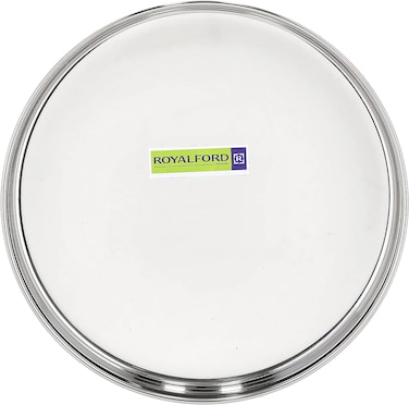 - <li>Quality product<li>VINTAGE STAINLESS STEEL – Royalford Khumcha Plate is made of premium high-quality stainless steel so that it will last you for years to come of great usage. Its metallic looks, advanced and doesn't feel cheap, Perfect for home daily use, not too heavy, Suitable for camping, gathering, party, gift, etc.<li>DISHWASHER SAFE - Royalford stainless steel dinner plate is totally safe and able to be washed in your dishwashers, this makes the whole clean-up process a lot easier with our dishwasher safe plates,) stainless steel with excellent rust resistance, no plastic, reusable, perfect for kid’s daily use.<li>HEAVY-DUTY DINNERWARE - Made of top-quality stainless steel you can use them practically anywhere, indoors or outdoors for camping, picnic, or to serve your favorite guest. This plate is also strong and is really easy to clean after using them for food. This Royalford plate is ideal for home, restaurant, camping, and travel, easy to clean, and stackable which will make it more convenient to those who use it.<li>BPA FREE FOOD SAFE – This Royalford Stainless Steel plate is safe to use as it is BPA-free and non-toxic, eco-friendly, easy to care for. Present your Indian foods like curries, daal, biryani, condiments & bread for an authentic Indian dining experience..SAFE FOR KIDS - Smooth round edges without rough spots won't hurt your children's soft skin, no harmful substances were added to the surface of the plate, Unbreakable and don't worry about sharp shards hurting your children.<li>Product Dimensions: 26 x 26 x 3 cm, 424 Grams