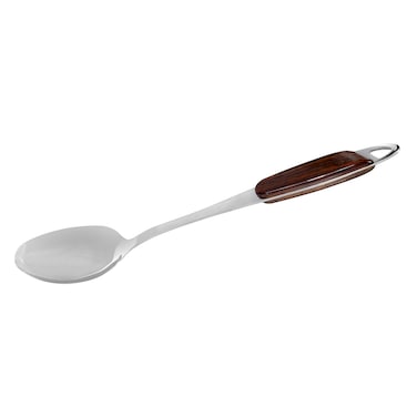 This cooking spoon is ideal for hundreds of cooking tasks - from stirring to scooping, serving, mixing, cooking etc. It has long stainless steel handle, so you can safely use it in hot pots and pans without having to worry about it melting. And with its sturdy handle, you always have total control whatever you're cooking. This spoon has a wide, strong bowl that allows you to scoop up big portions of food for serving.It also makes it easier to stir sauces and soups round large pans. Resilient to stains and rust, it won't lose its sleek stand-out look either. This simple, sturdy tool is made of quality stainless steel for long-lasting performance. Whether it's stirring a stew or scooping a serving of sauce, boiled potatoes or serving curries and rice at the dinner table, this sturdy spoon will always be up to the task. What a bargain!1. COMFORTABLE TO USE - The spoon boasts an ergonomic handle. This makes stirring much more comfortable. And with its soft-touch design, it's really easy to maintain a secure hold as your stir, scoop or serve.2. EASY TO STORE AWAY - Its stainless steel handle features a built-in hanging loop. This means you can simply hang it up on a kitchen hook or a utensils rack once you've finished.3. FROM COOKING TO SERVING AND MORE - You can use this kitchen spoon for so many common cooking tasks. From scooping a creamy cheese sauce, to lifting meatballs from hot frying pans, to serving portions of curry at the dinner table - it's one of those tools you'll use without thinking, all the time..