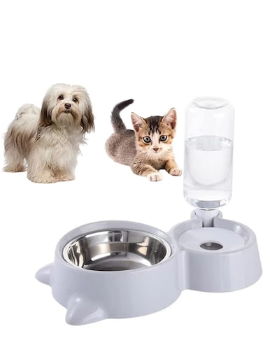 Sky-Touch 2-In-1 Dogs Cats Stainless Steel Feeder And Auto Gravity Water Dispenser, Automatic Water & Food Bowls