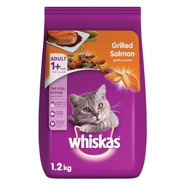 - <ul></li>TOP TIER PROTEIN LEVELS: These kibbles are not just scrumptious meals for your cats, they also provide them with great energy for play, thanks to their high-quality protein, and to keep them always on top of their game, with a fully balanced health! </li></li>PERFECTLY CATERED FOR ADULT CATS: Whiskas Grilled Salmon Dry Food is a nutritionally complete and balanced recipe that has carefully been created to cater to the requirements of an adult cat’s system.</li></li>HEALTHY TEETH: Whiskas offers your cat teeth-cleaning benefits, with a consistency that is soft for chewing. the kibbles work on dental hygiene, reducing plaque and tartar buildup. the fiber cleans their teeth to help freshen their breath with every bite.</li></li>INCLUDES ANTIOXIDANTS: These kibbles contain antioxidants like vitamin E for a healthy immune system which plays a vital role in keeping them healthy, by fighting off harmful bacteria, killing viruses, and eliminating everyday toxins.</li></li>PERFECT SALMON STEAK FLAVOR: Want to show your feline friend how much you love them? Surprise them with this gourmet dry food meal bursting with Grilled Salmon flavor that will leave them purring asking for more!</li><ul>