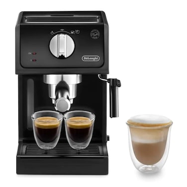 The De’Longhi pump-driven coffee makers combine technical perfection with the style that brings the Barista touch directly to your everyday life. ECP 31.21 comes with unique cappuccino system that mixes steam, air and milk, to produce a rich, creamy froth for a great cappuccino experience. This Coffee machine can be easily used with either ground coffee (1 or 2 cups) or with easy serving espresso pods. It comes with removable 1.1 L water reservoir for easy viewing and cleaning, with electronic auto-off, removable drip tray for easy cleaning, hot water function and electronic shut-off. It also has a unique function of the cup warmer to keep your coffee warm. Concentrating a high amount of pressure through coffee grounds is necessary to make espresso rather than normal coffee. The De’Longhi machine can exert 15 bars of pressure, which makes it powerful enough to make certified authentic Italian espresso, which will be music to the ears of espresso enthusiasts. De’Longhi ECP31.21 keeps your cups warmer while your coffee is brewing so that you get your cup of coffee just how you like it, without losing its warmth! This coffee maker by De’Longhi comes with a double drip tray that helps accommodate the cups of different sizes while you brew your coffee in your way. Equipped with the jog dial for espresso and cappuccino selection, the ECP31.21 coffee maker by De’Longhi provides you an easy and hassle free access to your favourite coffee. Regulate the steam while preparing your cappuccino with the regulating knob provided that helps you to brew your cappuccino to the perfection. With the auto shut-off functionality, the ECP31.21 coffee maker shut-offs automatically when not being used for a particular period.