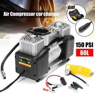 12V 150PSI Portable Heavy Duty Dual Cylinder Air Pump Air Compressor Tire Inflator For Car Truck With Puncture Kit BOX
