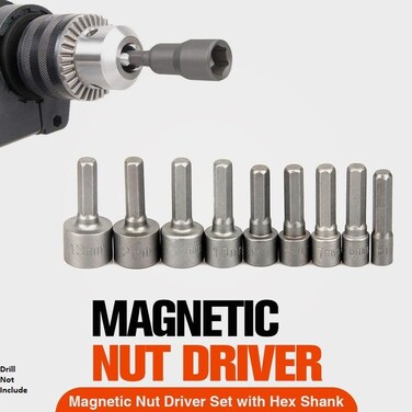 9 Pcs Hex Shank Nut Setter Set, Handle Electric Nut Driver Drill Bit Socket Wrench Screw Magnetic HORUSDY SDY-94168