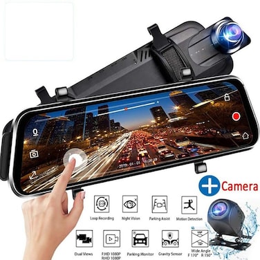 Car DVR Rear View Mirror Dash cam Full HD Car Camera 1296P Back Camera 10Inch Touch Screen