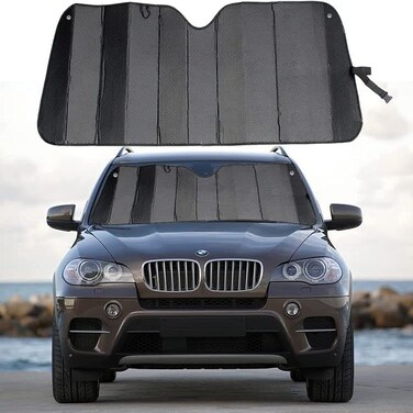 Car Sunshade Windshield-Jumbo Standard Sun Shade Keeps Vehicle Cool-UV Ray Protector -Easy to Use Sun Shade Black