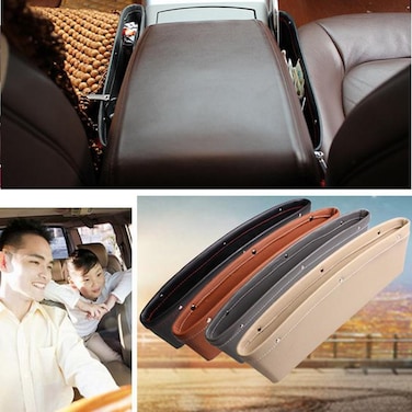 Catch Caddy Catcher Storage Organizer Box Caddy Car Seat Gap Pocket Holder Bag Case PU 2 Pcs Brown