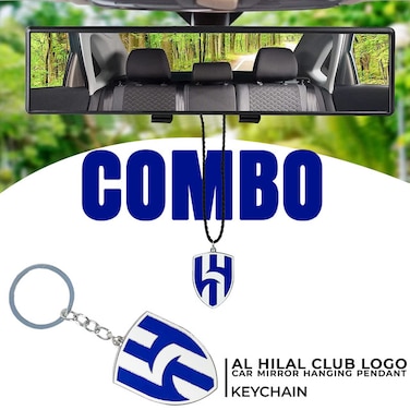 - Versatile Combo Pack: Includes a durable keychain and a car mirror hanging pendant for comprehensive styling. Premium Quality Materials: Crafted with high-quality, long-lasting materials for both pendant and keychain. Exclusive Design: Features the Al Hilal Club logo, perfect for fans and supporters.