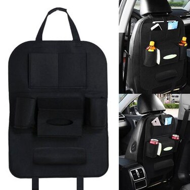 Hanging Bag Multi Pocket Bottle Cup Tissue Box Holder Pu leather- Black