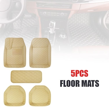 - Universal Car Floor Mat for Premium & High Quality Rexine Beige - 5 Pcs Set