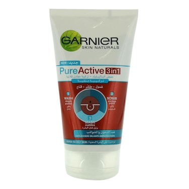 Garnier Skin Naturals Pure Active 3-In-1 Mask Scrub And Wash Blue 150ml