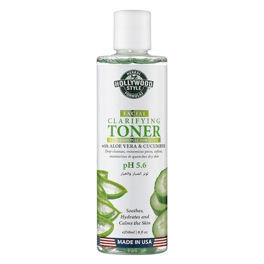Hollywood Style Organic Aloe Vera And Cucumber Facial Clarifying Toner 250ml