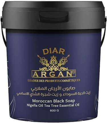 Moroccan Argan Soap with Black Seed Oil and Tea Tree Essential Oil from Diyar Argan 600 gm: It helps protect your skin and restore its softness with a silky texture because it contains a mixture of oils and natural extracts that in turn preserve the skin and prevent the appearance of signs of aging and dryness, which in turn works to lighten and unify the skin color as a result. Deep hydration in its rich ingredients. It also cleanses the skin and rids it of toxins so you can enjoy clean and fresh skin. Prepares the skin for exfoliation. It is preferable to use it once a week to get great results and smooth, silky skin. The soap is made from natural oils and is free of harmful chemical compounds. How to use: Apply the appropriate amount of soap to moisturized skin with warm water. Gently massage your body in circular motions, then rinse your body with lukewarm water