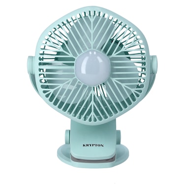Krypton Knf5405 Rechargeable Mini Fan With LED Light - Clip Fan - 3.7V, 800mAh Lithium Battery - USB Charging - 6*0.5W Hi Power LED Light - Portable, Lightweight, 2 Year Warranty