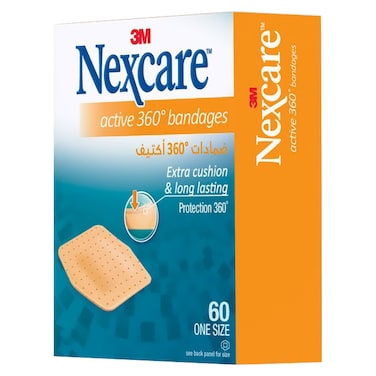 3M Nexcare Active 360° Bandages, Extra Cushion & Long-Lasting Protection, 60 One Size