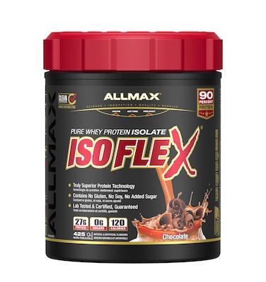 Isoflex Protein has taken Whey Protein Isolate (WPI) technology to a whole new level of tangible, measurable excellence. Isoflex contains significantly less lactose, fat, sugar and carbohydrates than regular Whey Protein Isolate.Isoflex contains absolutely no whey concentrate!.Pure Whey Protein Isolate gives you a whopping 90% protein content! With only genuine, intact, undenatured whey protein fractions. 27g of pure protein that has been lab tested, certified and approved.