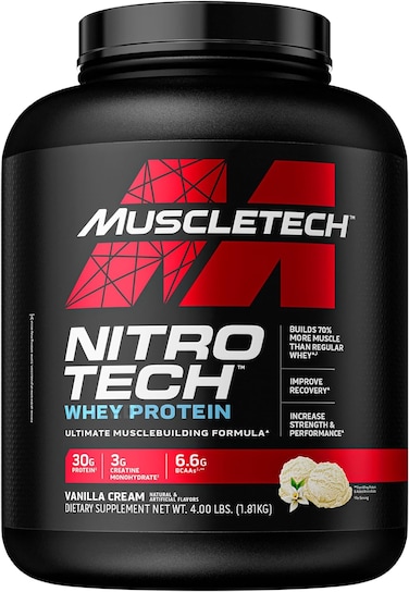 MuscleTech Nitro Tech Whey Protein, Vanilla Cream, 4Lb
