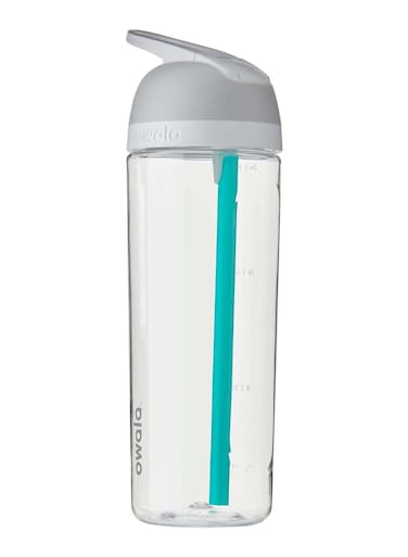 The Owala Flip Tritan Water Bottle Made of BPA- and phthalate-free, stain and odor-resistant durable Eastman Tritan plastic with a built-in, easy-clean straw and a wide-mouth opening.