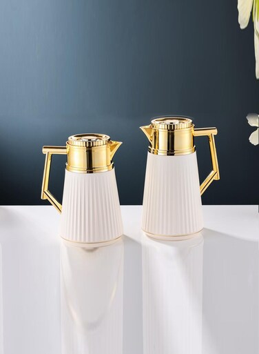 Royal Camel Thermos Set Of 2 Pieces For Coffee And Tea Beige/Golden1 Liter And 0.5 Liter