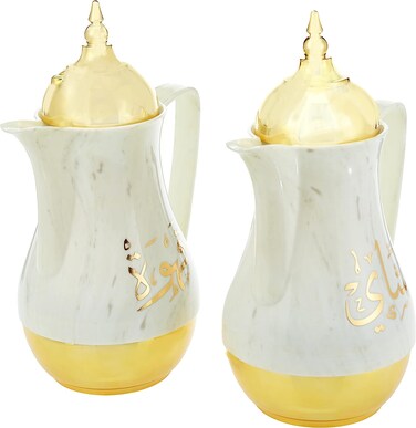Royalford 2 Piece Marble Tea & Cawa Set 1 Liter Each With Double Wall Pink Glass Liner Insulated Coffee Pot Thermal Jug - Leak Proof And Heat Cold Retention