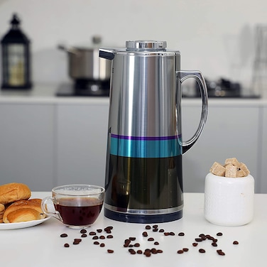 - <li>LONG HEAT AND COLD RETENTION - This Royalford vacuum flask has an insulation technology locks in temperature to preserve flavor and freshness, that keeps beverages hot for cold for long hours.<li>HIGH QUALITY - This Royalford flask is thick-walled thermal is made up of durable iron, plastic, glass, and silica gel built to withstand the demands of everyday use. It keeps your beverages as cold/cold for a long time.<li>EASY TO USE & CLEAN! - Royalford Coffee Jug is designed with a large mouth opening for easy filling with your chosen beverage. It’s comfortable designed handle is made for a single hand pouring with a simple push-button release.<li>COMFORTABLE HANDLE, POURING SPOT - This Vacuum Flask has a simple yet very practical high grip handle and perfect pouring spot which will give you an easy pouring without any spills.<li>WIDE MOUTH, HIGH CAPACITY - Its large mouth opening makes filling and cleaning easy, it can even be used with ice for extra cold refreshment. Its outer body stays cool to the touch when filled with hot liquids and is condensation-free with cold beverages. It comes with a large capacity of 1.9 liters, ideal for family outings, or with friends.<li>Product Dimensions: 8.8 x 19.6 x 12.8 cm, 282 Grams