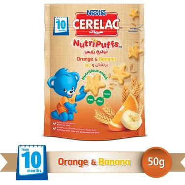 Cerelac nutripuffs for babies from 10 months with orange and banana bag 50 g