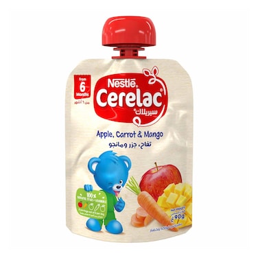 Nestle cerelac fruits & vegetables puree pouch apple carrot & mango 90g