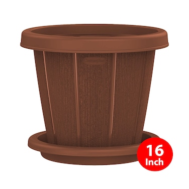 Woodgrain flowerpot with tray 16 inch