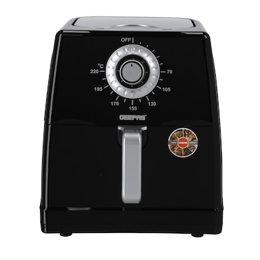 EASY TO USE DIALS - Start cooking your food in just minutes with the easy-to-use operating system. Simply select your temperature up to 220-degree celcius and set the timer. Then sit back and relax while your food cooks away with no fear of spilling or causing a mess anywhere.REMOVABLE PARTS FOR EASY CLEANING - After use, both the tray and the cooking basket can be removed for easy cleaning. These can be hand washed in warm soapy water or, if you want to give them a deeper clean, due to its non-stick surface it avoids food sticking on it making it easy for cleaning.STYLISH COMPACT DESIGN - The Geepas Air Fryer has been designed to be both compact and practical but also timeless. A brushed chrome lid and handle with a black gloss outer finish create a modern and luxurious design that looks great in any kitchen. Comfortable handles give a cool touch while removing the hot delicious food.8 LITRE CAPACITY - Cook enough for the whole family with the generously-sized cooking tray and mesh frying basket. Made with a high-quality non-stick coating, the mesh basket is essential in helping the hot air circulate around the food inside and also allows any juices to drain away. The cooking tray neatly collects any fats and juices from the food which can then be disposed of after cooking has finished.DETACHABLE BASKET - A removable inner basket means it's easy to separate and clean the part that gets up close and personal with your food. You can also bring it to where you're preparing food for extra convenience.
