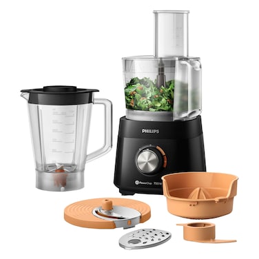 The Philips Power chop Daily Collection Compact Food Processor 750W HR7302 Black is a versatile and efficient kitchen appliance.