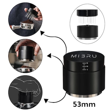 - Coffee leveled ripple tamper with needle distributer 53mm