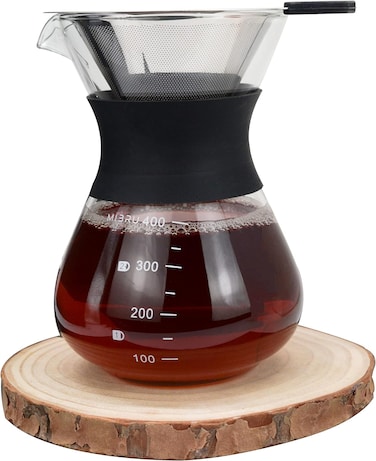 Glass Bowl with Stainless Steel Filter & Heat Resistant Handle (400ml)