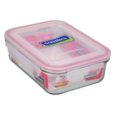 Glasslock Rectangular Food Container Clear/Pink 1L