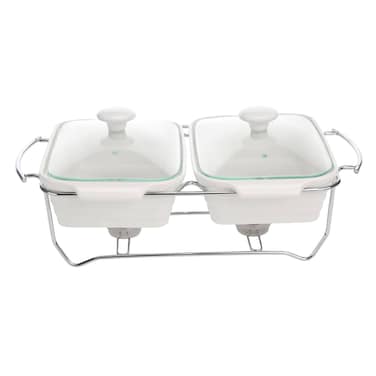 Ascot Ceramic Food Warmer Container White And Silver 26cm 2 PCS
