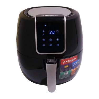 Hommer Digital Air Fryer 5.3 Liter capacity. Touch Screen control. 360 degree high speed air circulation Auto Shut-off Safety protection. Rapid Air technology enables you to fry, bake, roast and grill while ensuring less fat and smell. Removable non-stick and the food basket facilitates easy and convenient cleaning. Parades a cutting-edge design for delicious and low-fat cooking results. Unique design promotes optimal heating to fry a variety of meals in a fast and healthier way. Fully adjustable temperature control allows you to pre-set the temperature at the desired level.