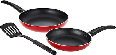 Royalford 3Pcs Non-Stick Fry Pan Set, Red, Aluminum