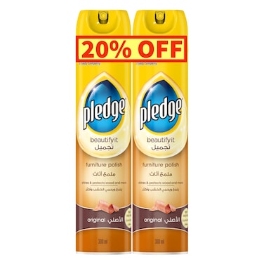 Pledge Furniture Polish, Original Twin pack with 20% OFF, 300ml