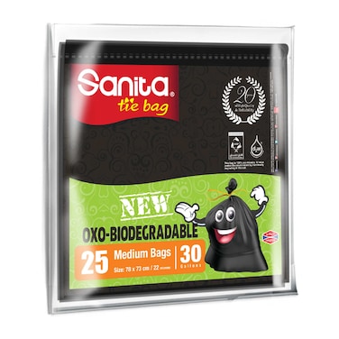 Sanita Tie Bag Tie Bags Biodegradable 30 Gallons 25 Bags
