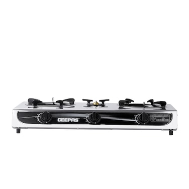 - <p><li>GEEPAS 3 BURNER GAS STOVE – Powerful and heats up food quickly and evenly. This camping burner features a control knob to conveniently set the desired flame for your cooking.<p><li>AUTO IGNITION – The Stainless Steel cooktop triple burner comes with an auto-ignition function to sidestep the need for conventional matches or lighters when igniting your burner. Simply push and turn the knob to enable the flame.<p><li>EASY CLEANING – Easy to maintain and polish, the stainless steel stove double burner’s surface makes dried food scraps and smudges a problem of the past. Straightforward to wipe down and extremely efficient, the triple stainless steel burner provides users the best of simple outdoor cooking.<p><li>ENERGY EFFICIENT BURNERS – These burners provide you a perfect flame and evenly heating, doesn't waste the energy as it comes with auto-ignition features. This design burners provide efficient combustion which results in strong flame and low gas consumption. Simply push and turn the knob to enable the flame.