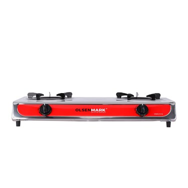 Olsenmark 2-Burner Stainless Steel Gas Stove, OMK2316, Black/Silver/Red