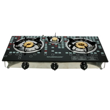 Olsenmark gas cooker is a fuel-efficient cast iron burner that is suited buddy in case of heavy, routine and tough cooking. Designed with a tough 8mm glass top, accessorized with stainless steel plates, easy-to-use knobs and supports for heavy vessels, this gas cooker is sure to be your helping hand. Igniting a smoke-free blue flame armed with piezo auto ignition, the Olsenmark gas stove is your ammunition to fight those heavy cooking days.One of the greatest challenges while cooking is maintaining a clean kitchen. The Olsenmark 3 burner gas stove can be cleaned very easily, simply by using a wet cloth. Now you can leave your kitchen as clean as when you started.Engineered to avoid gas leakage, the Olsenmark gas burner gives you the utmost assurance of safety. Its compact design makes it the perfect fit for your kitchen by occupying less space and adding more utility. They are engineered to avoid leakage of gas to give you a safe and efficient cooking experience. The compact design of the stove saves you a lot of counter-top space.The innovative Stainless steel drip trays are designed for easy cleaning and maintenance that gathers spills and overflows while keeping the cooktop clean.