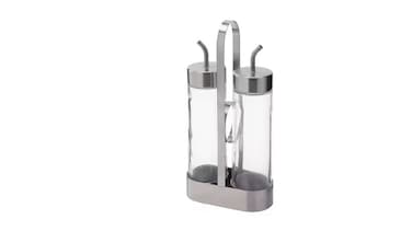This set is just as decorative on the kitchen worktop as on the dining table. You easily see when it's time to refill since the bottles are made of clear glass. Comprises: 2 bottles for oil and vinegar (diameter 5 cm, height 20 cm, volume 22 cl). Wash this product before using it for the first time.