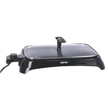 Grill without smoke inside your houseGeepas Smokeless Grill is an indoor barbecue grill with a Non-Stick cooking surface, for better flavour and even cooking. It is the way to enjoy GRILLING SEASON all year long no matter what the weather is because we brought the fun of grilling inside and left the smoke and the mess outside. It's the faster, more fun, easier and smoke-free way to grill indoors whenever you want. It's electric, so there's no messy charcoal and no gas tanks to refill. So, now it's grilling time anytime and anywhere you want!you can grill your favourite healthy foods indoors no matter what the weather is. Precise temperature control from 220F to 450F allows optimal temperature for searing meat, leaving it juicy and tender on the inside. A large grilling plate with a non-stick cooking surface is ideal for entertain families and friends with delicious and healthy grilled food. Its glass lid lock in juices, crisp for the perfect finish, enjoy perfectly crispy chips, golden vegetable crisps, and healthy grilled food. Up to 75% less fat than traditional charcoal grilling methods. The Geepas Thermostat Controlled Non-Stick Indoor Grill comes equipped with a nonstick plate making it ideal for grilling or searing steaks, chops, chicken, fish, burgers, and vegetables.Have absolute control and grill to your exact desired temperature with the grills removable and adjustable temperature control. The non-stick coating heating plate allows the food to be taken out easily without residue. Multiple detachable parts make the machine have no unreachable clean corners.