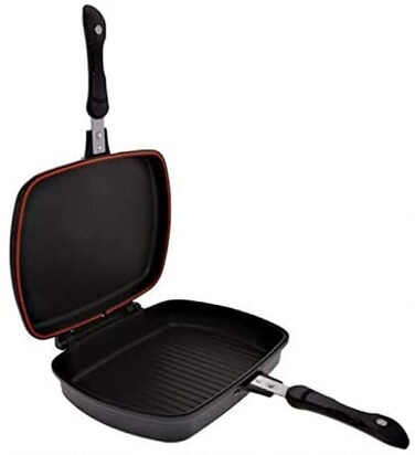 - <p>Cook your favorite items easily now with the Double Grill Frying Pan<p>High quality die cast aluminum<p>Non-stick frying pan<p>Strong magnetic clips combined with the sealing rubber locks in heat, steam, flavor and nutrition<p>Ideal for healthy cooking<p>Product Description:</p>Product Features : <p>Cook your favorite items easily now with the Double Grill Frying Pan<p>High quality die cast aluminum<p>Non-stick frying pan<p>Strong magnetic clips combined with the sealing rubber locks in heat, steam, flavor and nutrition<p>Ideal for healthy cooking<p>Fry without cooking oil and steam without water thereby retaining food nutrition<p>Speedy and Healthy cooking by pressure<p>Size : 32 cm<p>Type : Pans<p>Color : Black