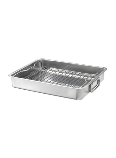 - Koncis Roasting Tin Pan With Grill Rack, Silver/Grey, 40X32cm