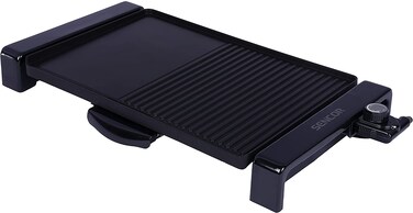 Sencor Barbecue Combo Grill Electric table grill Ideal for year-round grilling inside the house and in the garden The combination of two different grilling surfaces Large grilling surface (47 x 31 cm) Non-stick finish grilling area Rotary Adjustable thermostat Keep Warm function for maintaining the temperature (60 ° C) Anti-slip feet Power 2300 W Cord Length: 1.0 m Dimensions without thermostat (width x depth x height): 596 x 344 x 74 mm Dimensions including thermostat (width x depth x height): 654 x 344 x 83 mm Weight: 3.1 kg Voltage and frequency: 220-240 V, 50 Hz